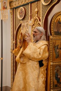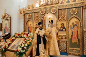 Богослужение возглавил настоятель храма иерей Даниил Коньков в сослужении клирика Свято-Троицкого кафедрального собора протодиакона Александра Пушкарёва.